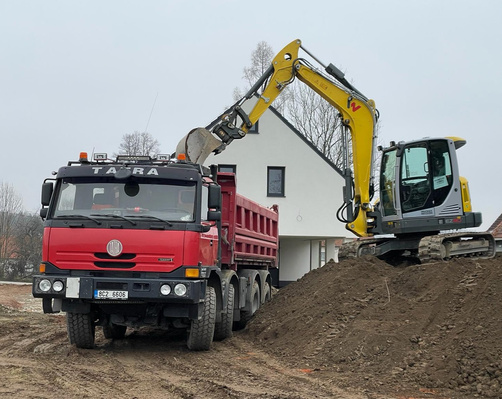 Úpravy terénu, skrývky, výkopy pro rodinné domy, vodovody, kanalizace, HTU, zásypy, násypy až po dokončovací práce.